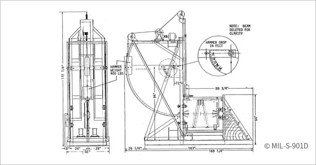 Test system that meets MIL-S-901D, including high impact environment test conditions for marine machinery and systems.
