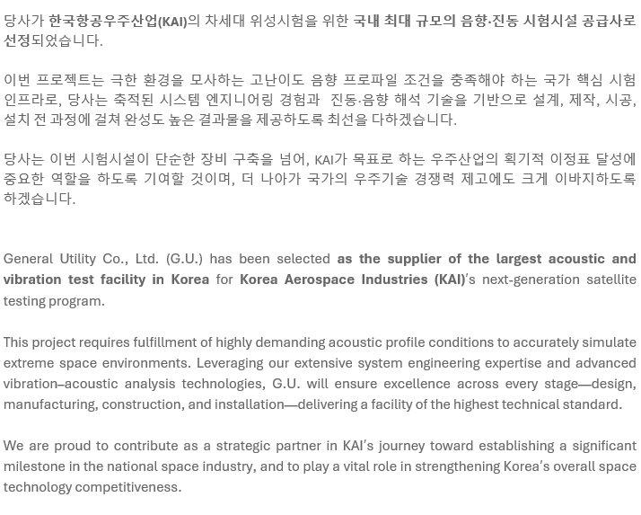 [NEWS] 한국항공우주산업 위성시험용 대형 음향진동시험 시험설비 공급자 선정
